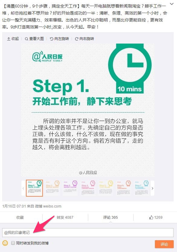 那天@人民日报 微博发了这样一条「清晨 60 分钟,9 个步骤,搞定全天工作」,感觉不错,也挺眼熟(因为大象去年就分享过了)。但大象今年升级了,不止让象亲们「看到」,还能「做到」。