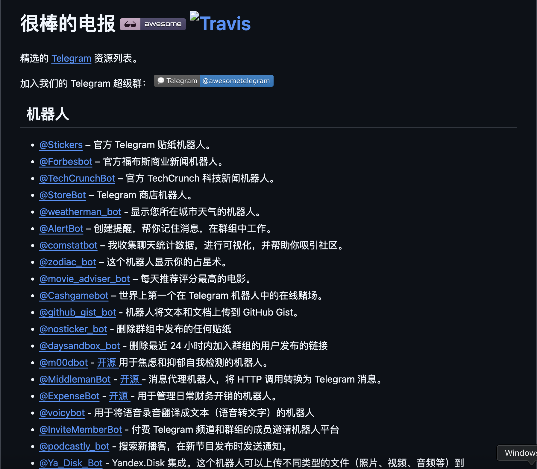 - 1. Awesome Telegram:你的机器人和频道导航图!